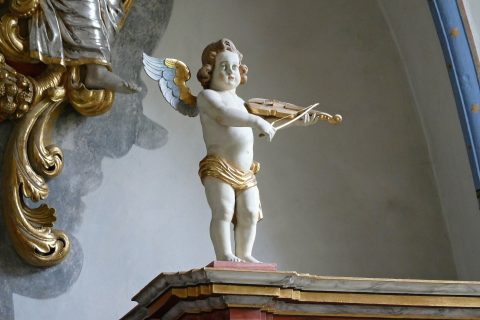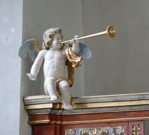 Die Prospektpfeifen der Andreas-Schneider-Orgel sind als Engelszungen gestaltet.