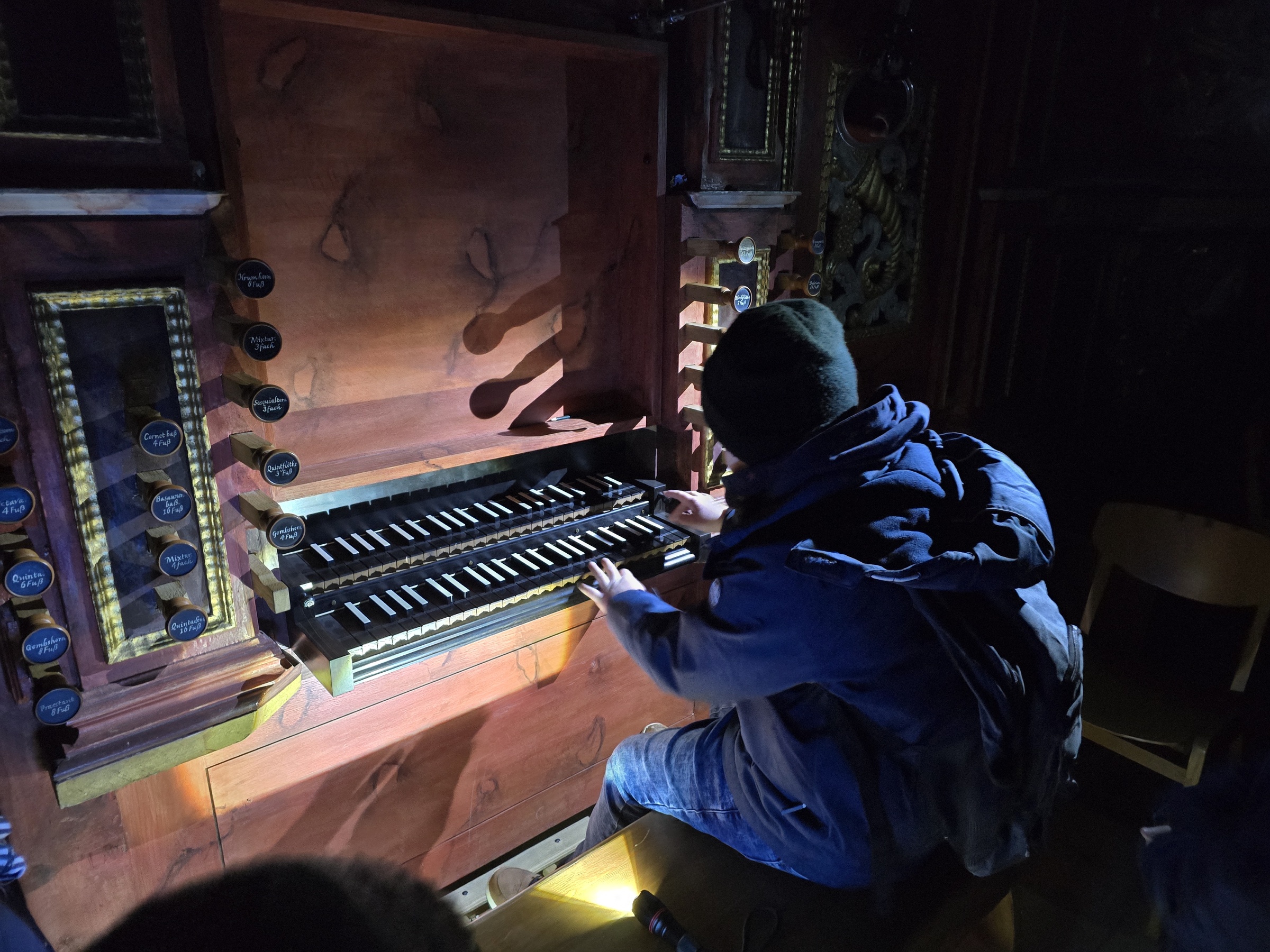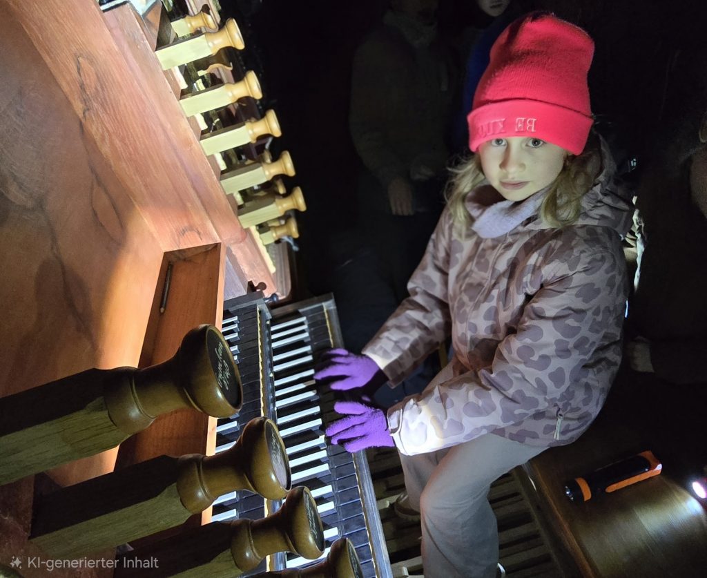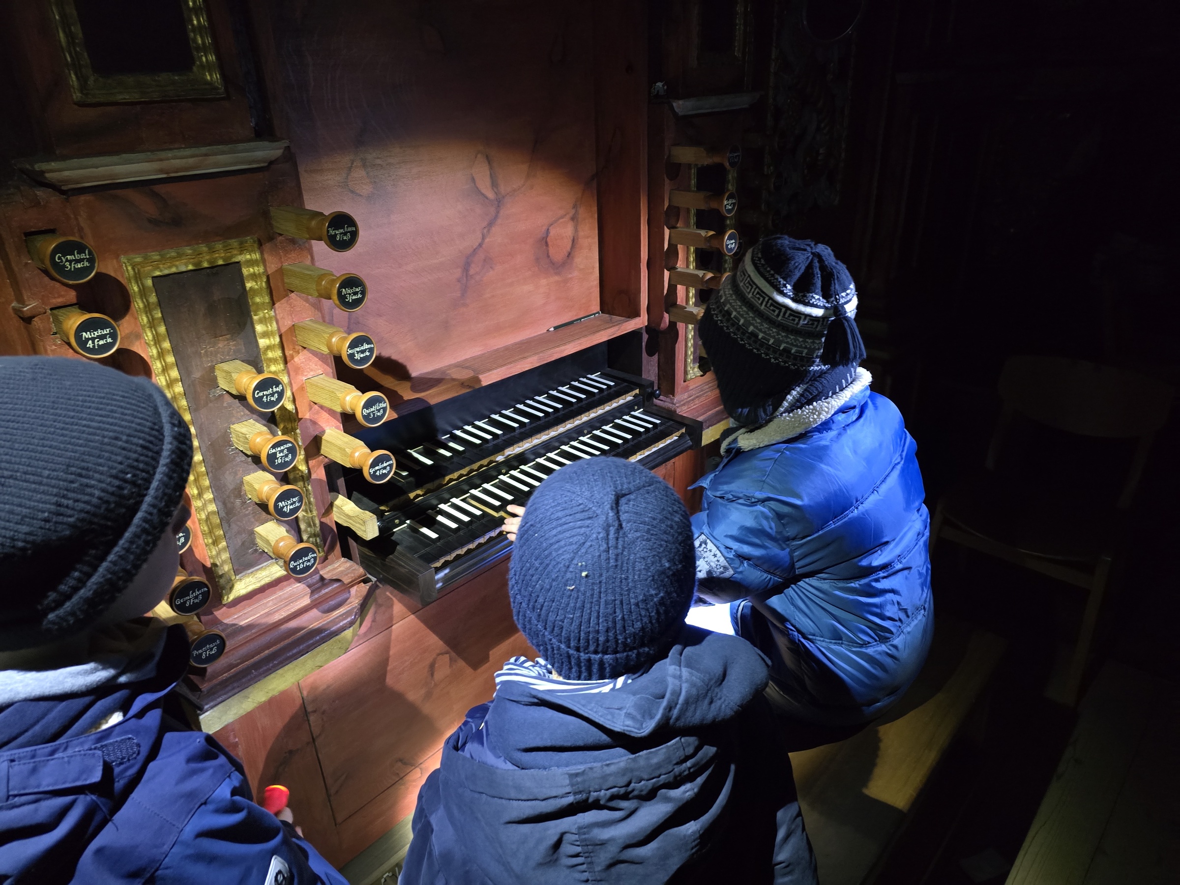 Unvergessliche Momente in der winterstillen Kirche: Der Orgel einige Töne zu entlocken, war für die Kinder ein Highlight,