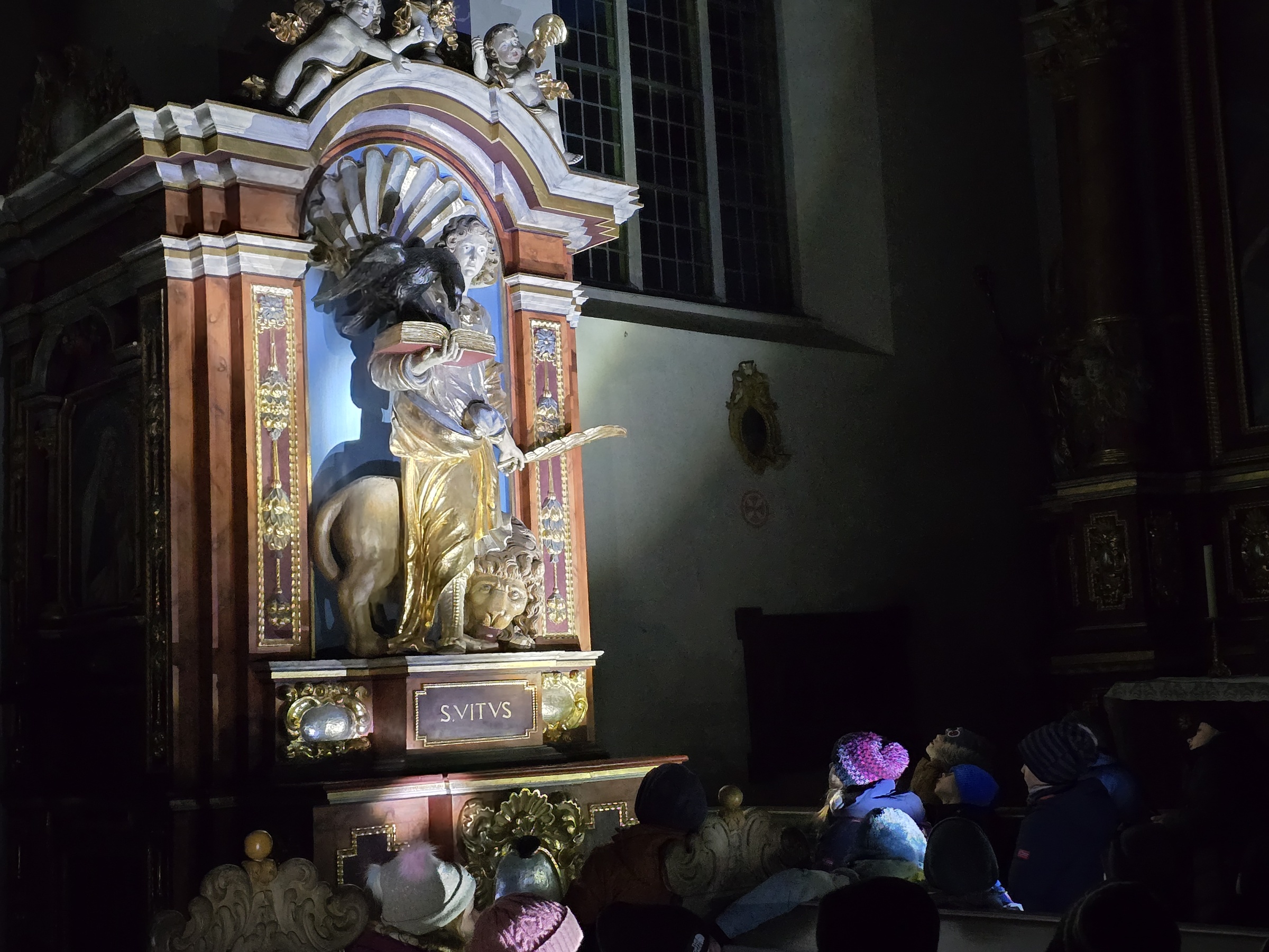 Hinter der Chorschranke durften die Kinder in die Wandnische mit dem Vitusschrein schauen.