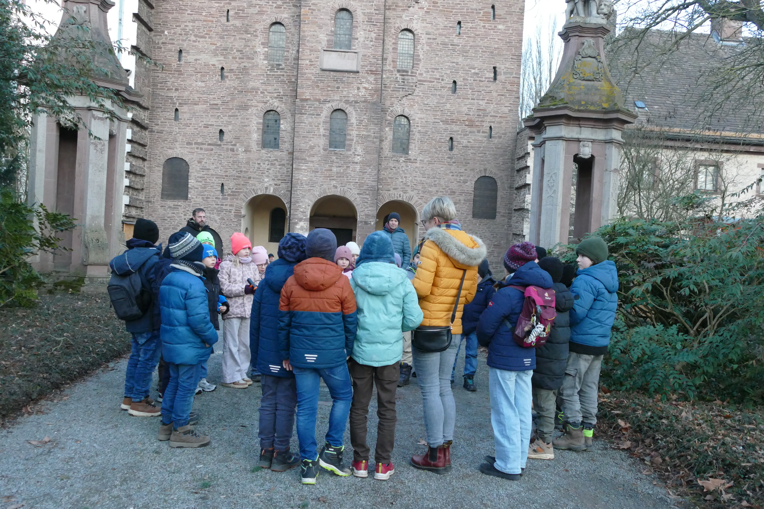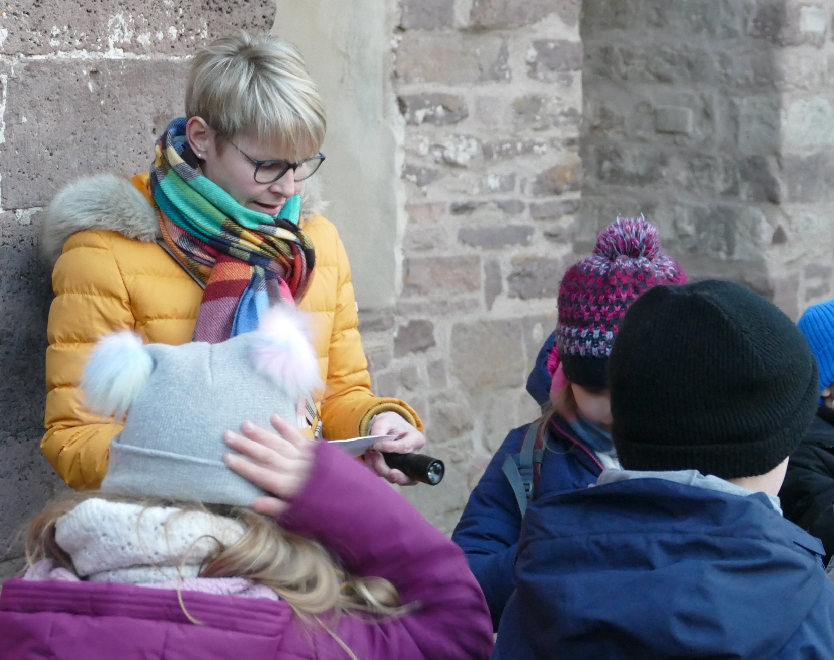 Diese mystische Stimmung macht eine Erkundung für junge Entdecker umso spannender. Entsprechend erwartungsfroh und abenteuerlustig versammelten sich an einem Abend im Januar angehende Kommunionkinder des Pastoralverbunds Corvey vor der Doppelturmfassade des karolingischen Westwerks.