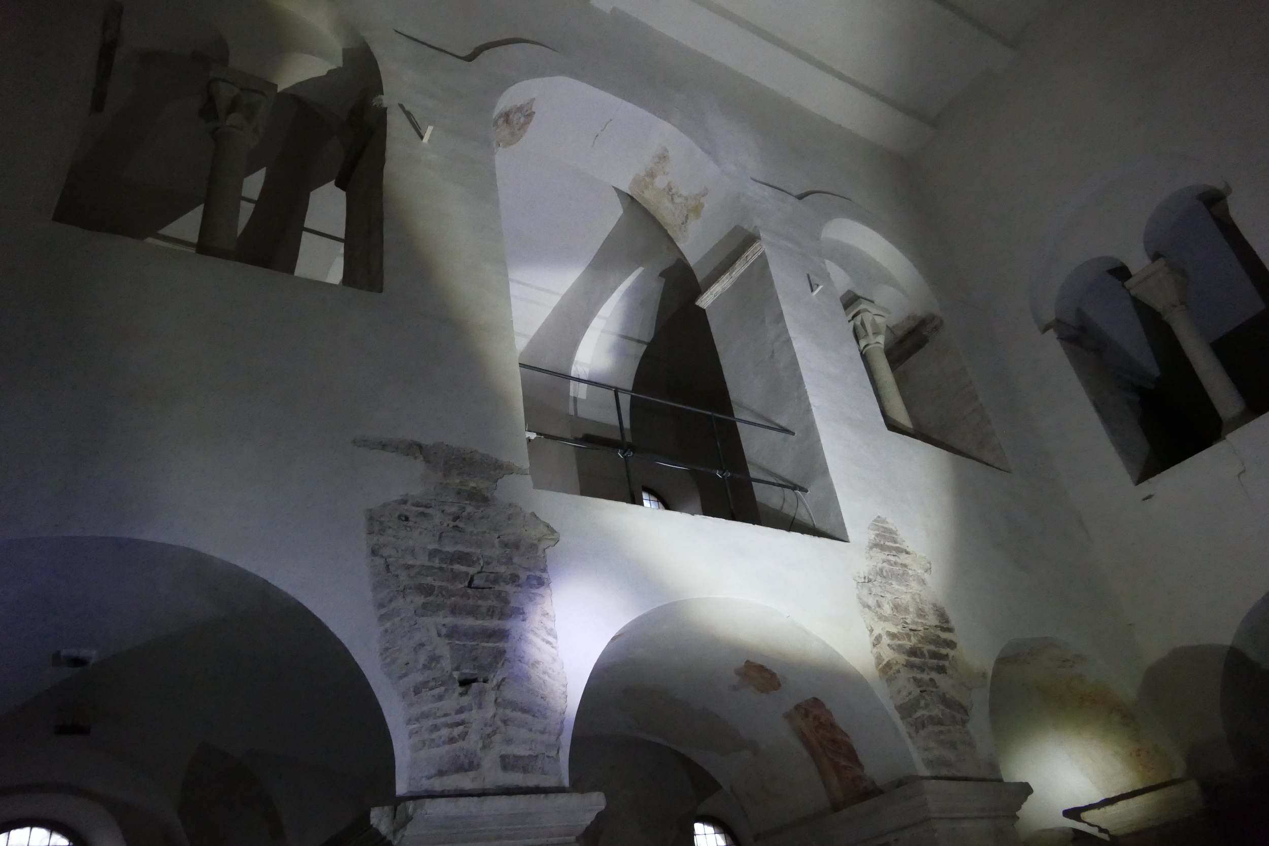 Nichts wie hinein also ins Westwerk. „Könnt Ihr Euch vorstellen, dass diese Säulen mehr als 1000 Jahre alt sind?“ fragt Marion Dinand in der Erdgeschosshalle in die Runde. Den Scheinwerfer ihrer Taschenlampe richtet sie auf eines der karolingischen Kapitelle. Ein Junge schüttelt beim Blick hinauf sofort den Kopf. „Nein“, sagt er. „Das alles sieht viel neuer aus.“