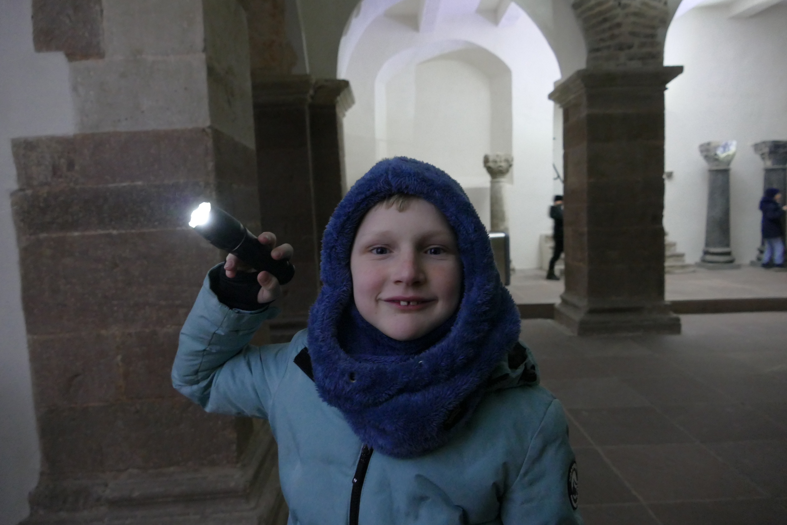 Auch den Johanneschor des karolingischen Westwerks erkundeten Henry und die anderen Kommunionkinder mit der Taschenlampe.