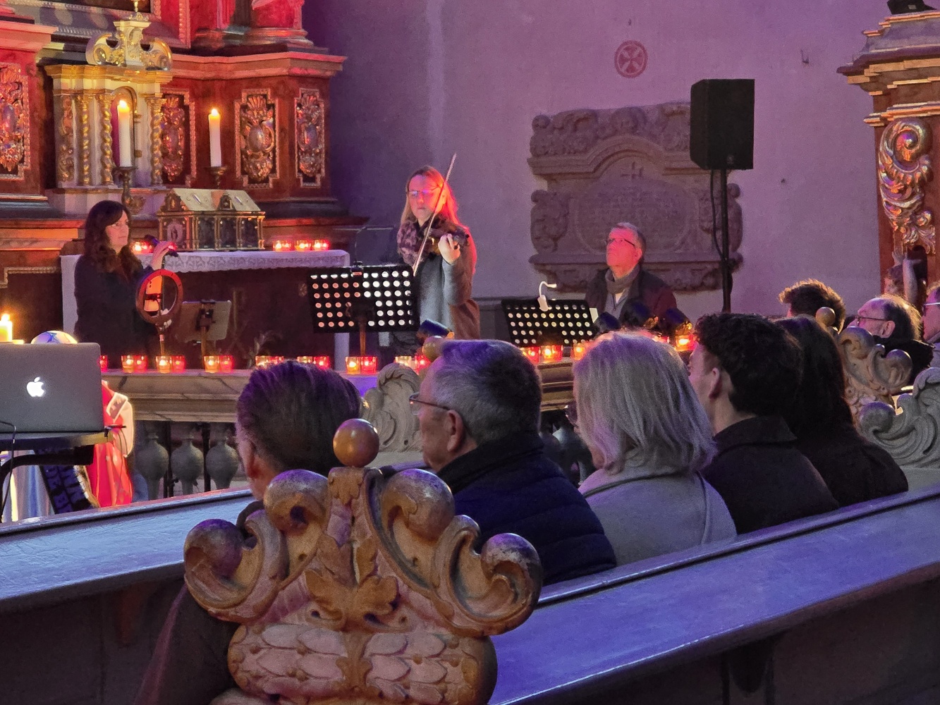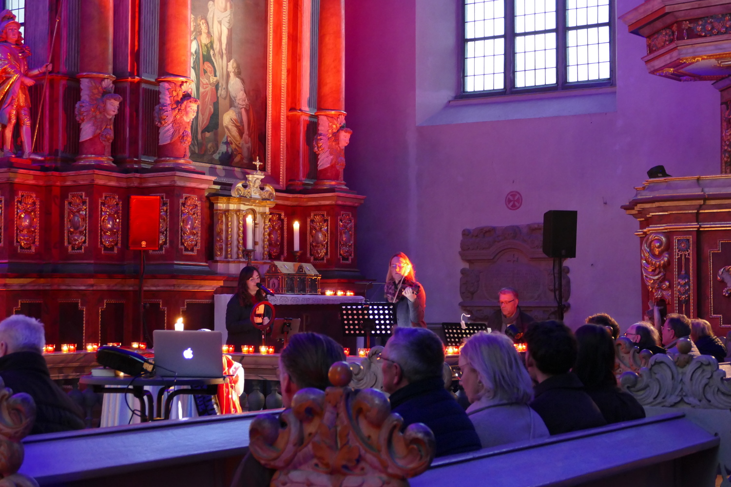 Die Musik – wie immer bewegend gestaltet von Yvonne Sperling (Gesang), Kira Westermann (Violine) und Ralf Westermann (Piano) – spielte wie immer eine Hauptrolle beim Lightroom-Gottesdienst.