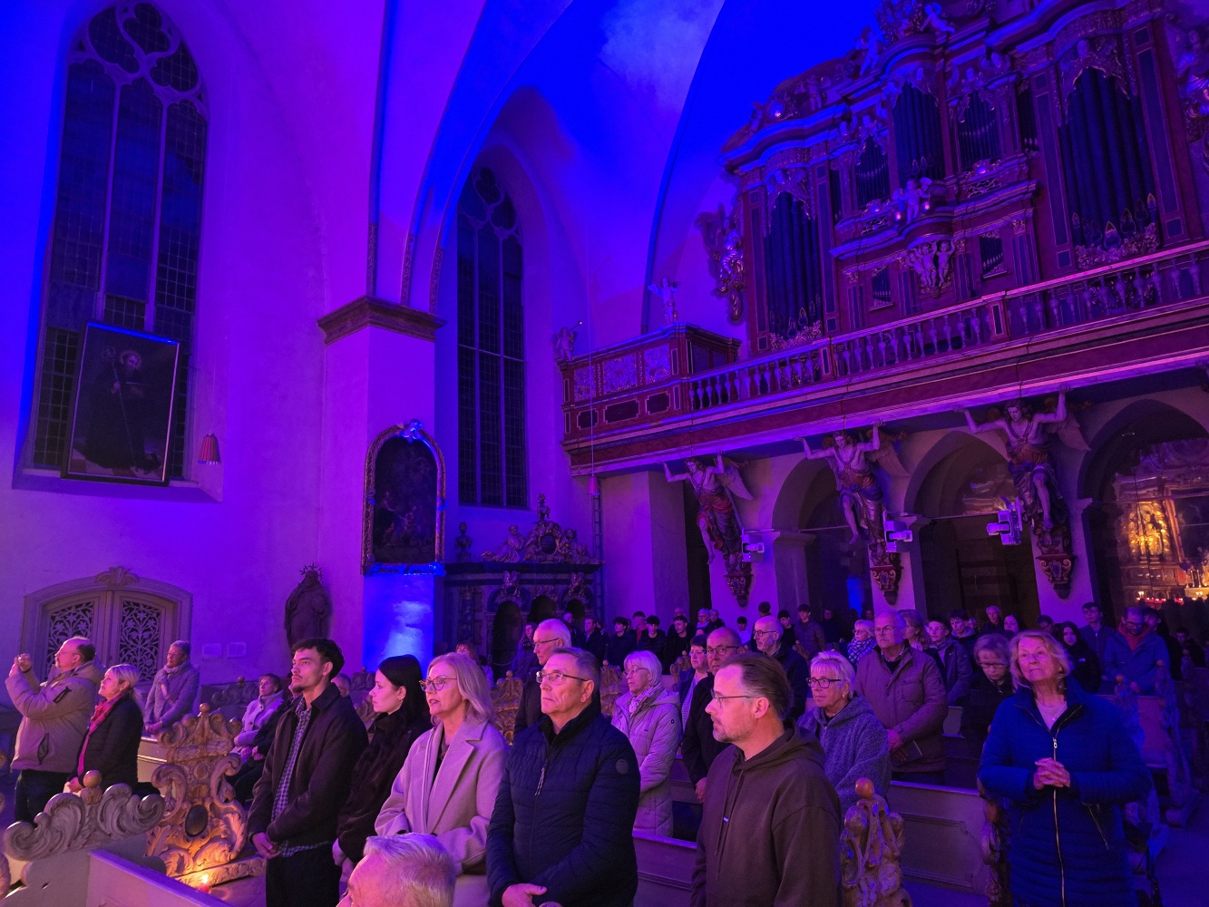 Diesen Eindruck gewannen die Gottesdienstbesucher. Sie erlebten in Corvey auch den privaten Aaron Zehnter. Mit seiner Partnerin Sophie Waldhoff war er direkt aus Wolfsburg gekommen, wo er am Morgen noch trainiert hatte. Um ihren Sohn zu begleiten, waren die Eltern Luzia und Georg Zehnter aus der Heimat in der Nähe von Würzburg angereist. In familiärer Vertrautheit nahmen die vier in der Kirchenbank Platz, um die Impulskraft dieses Abends – die Kernbotschaft, dass Niederlagen nicht das letzte Wort haben, – und auch die bewegende Musik auf sich wirken zu lassen.