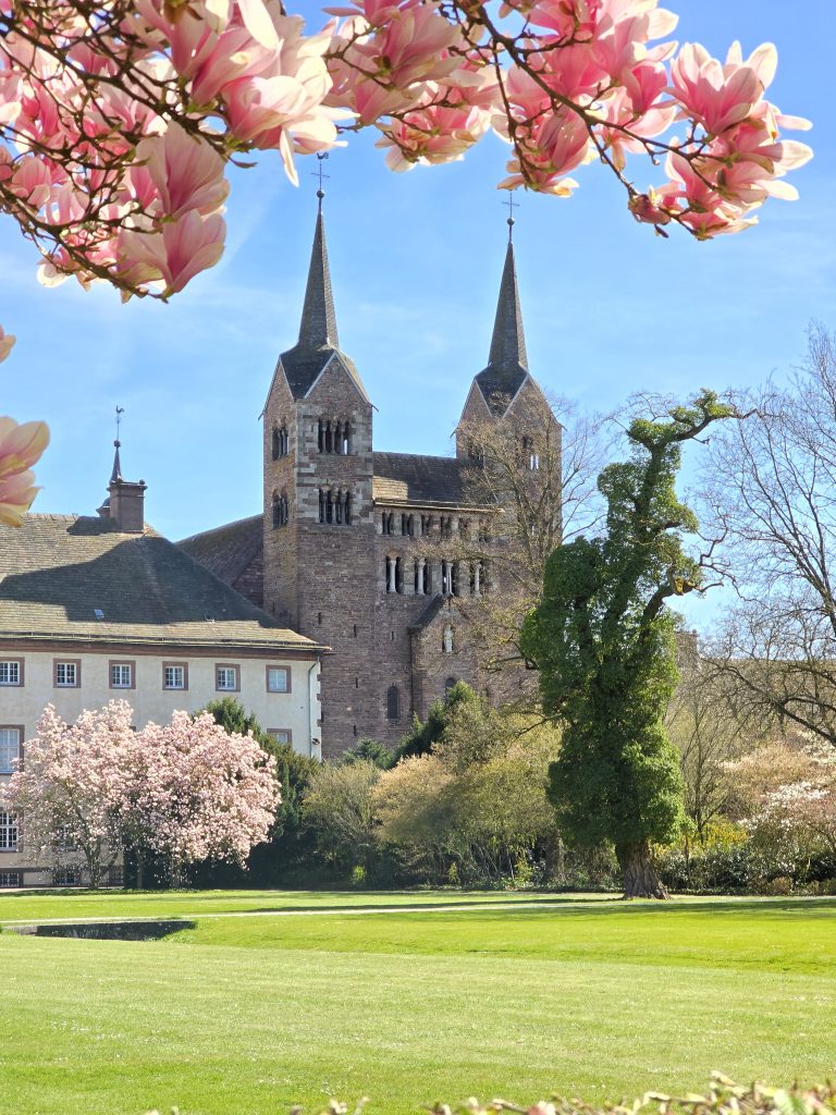 Baulich haben die Mönche mit dem karolingischen Westwerk und der barocken ehemaligen Abteikirche steinerne Glaubenszeugnisse hinterlassen, die in der Saison von Palmsonntag bis Allerheiligen alljährlich hunderte Gäste, darunter Urlauberinnen und Urlauber, in den Bann ziehen. Beim Mittagsgebet mittwochs um 12 trifft es sich oft so, dass zufällig gerade Touristen die Kirche besichtigen. Wenn sie die Gelegenheit zum Innehalten nutzen und in der Bank Platz nehmen, erleben sie den kulturhistorisch sehenswerten Sakralort in seiner ursprünglichen Bestimmung als Gotteshaus.