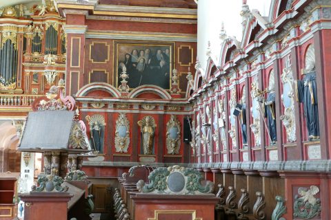Im Chorgestühl haben sich die Mönche einst zu den Gebetszeiten versammelt. Nach dem Mittagsgebet haben die Gäste die Möglichkeit, das Chorgestühl aus der Nähe zu betrachten.