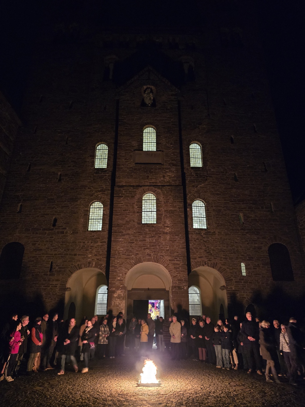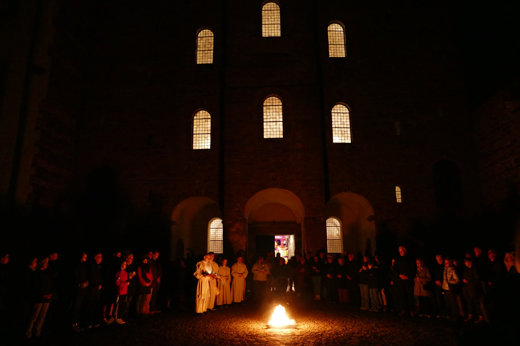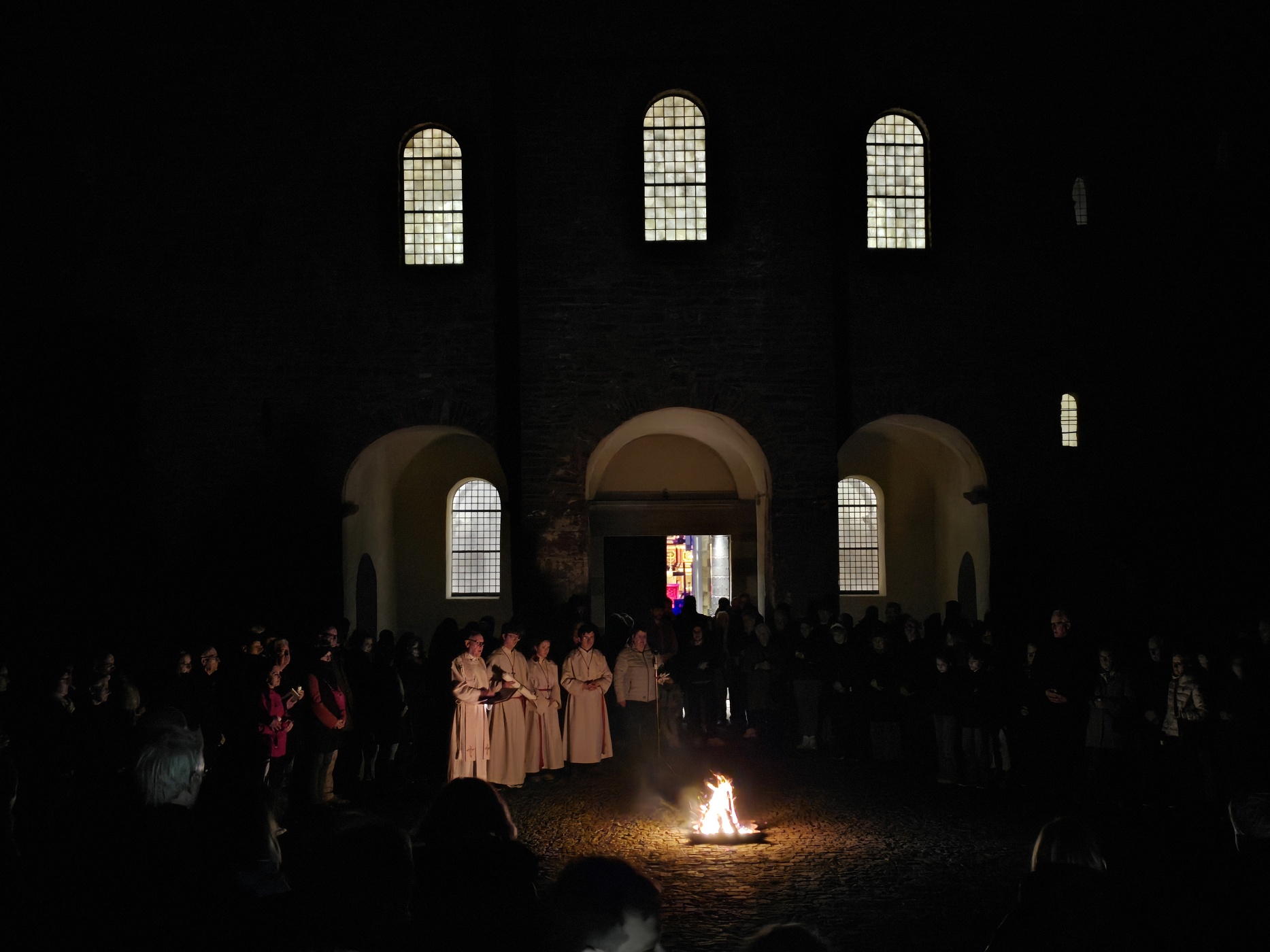 Das Kloster trug dank seiner strahlkräftigen Missionstätigkeit zur Entstehung des christlichen Europas bei und lädt seither beständig zu Liturgie, Gebet und Einkehr ein. Daher ist es doppelt ergreifend, wenn vor dem Westwerk das Osterfeuer nicht nur die Nacht, sondern auch ein frühes christliches Missionszentrum erhellt. Das Triduum 2026 führte zum Urgrund des Glaubens selbst und zu einer seiner Wurzeln in der Region.