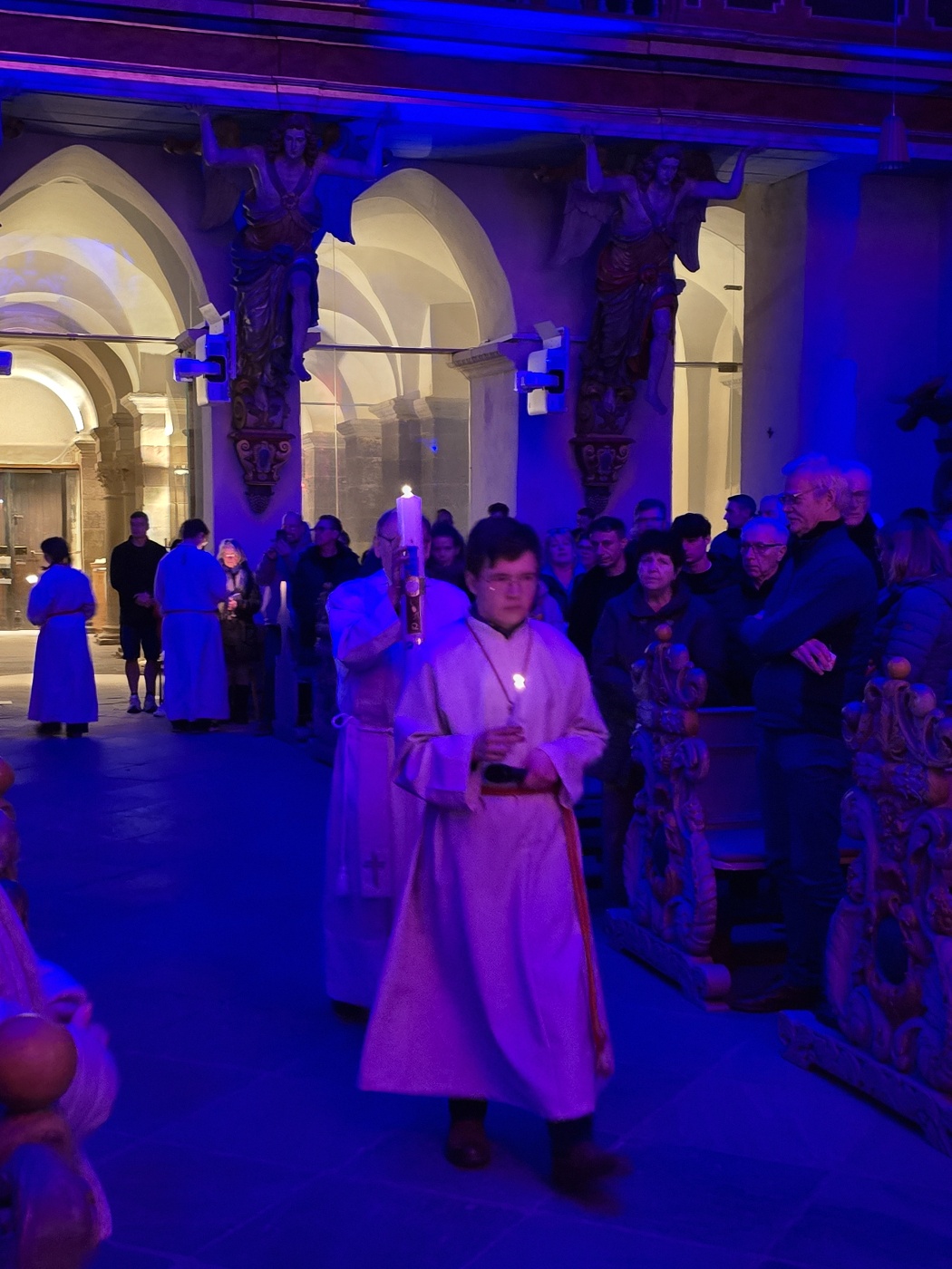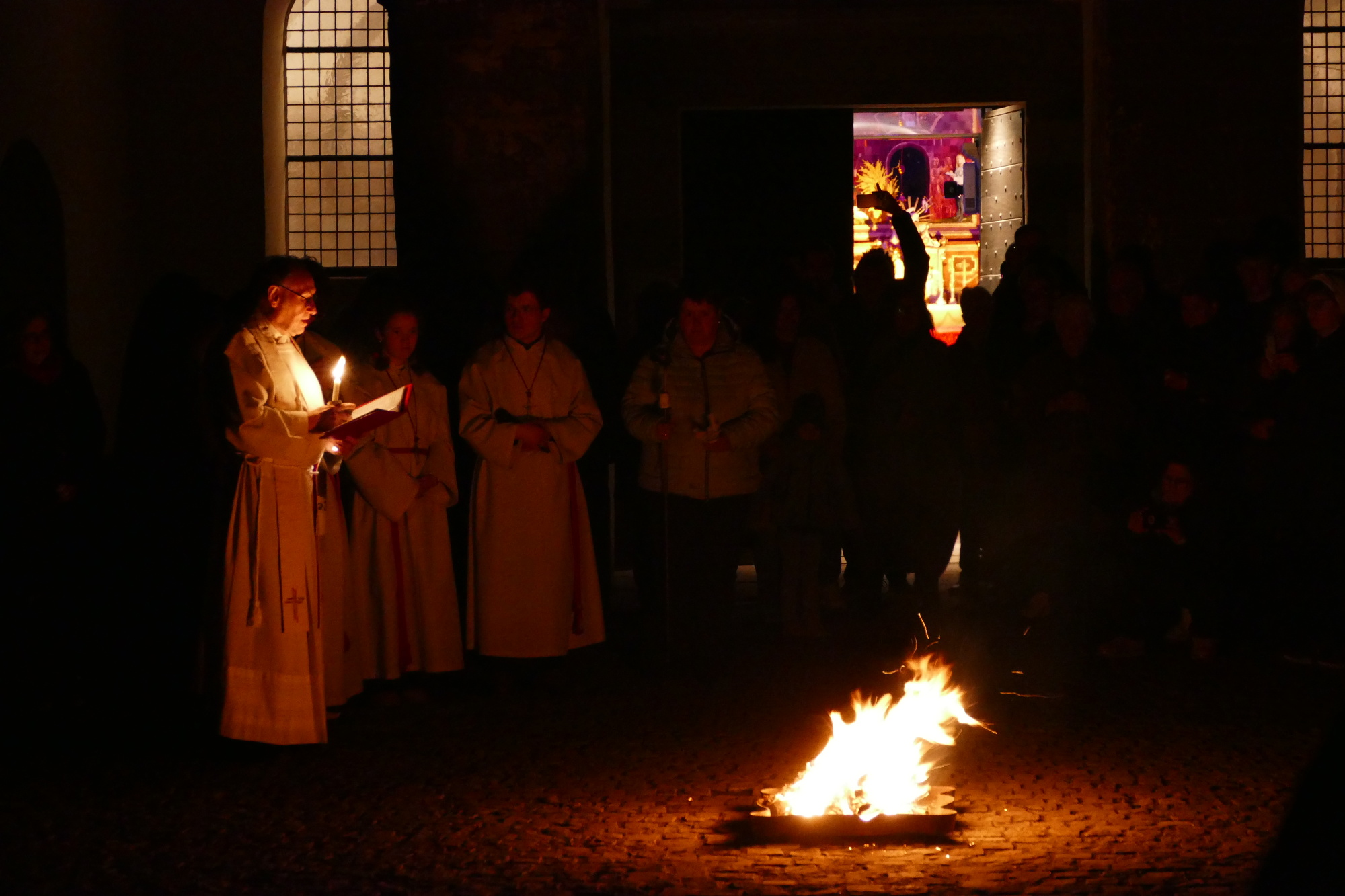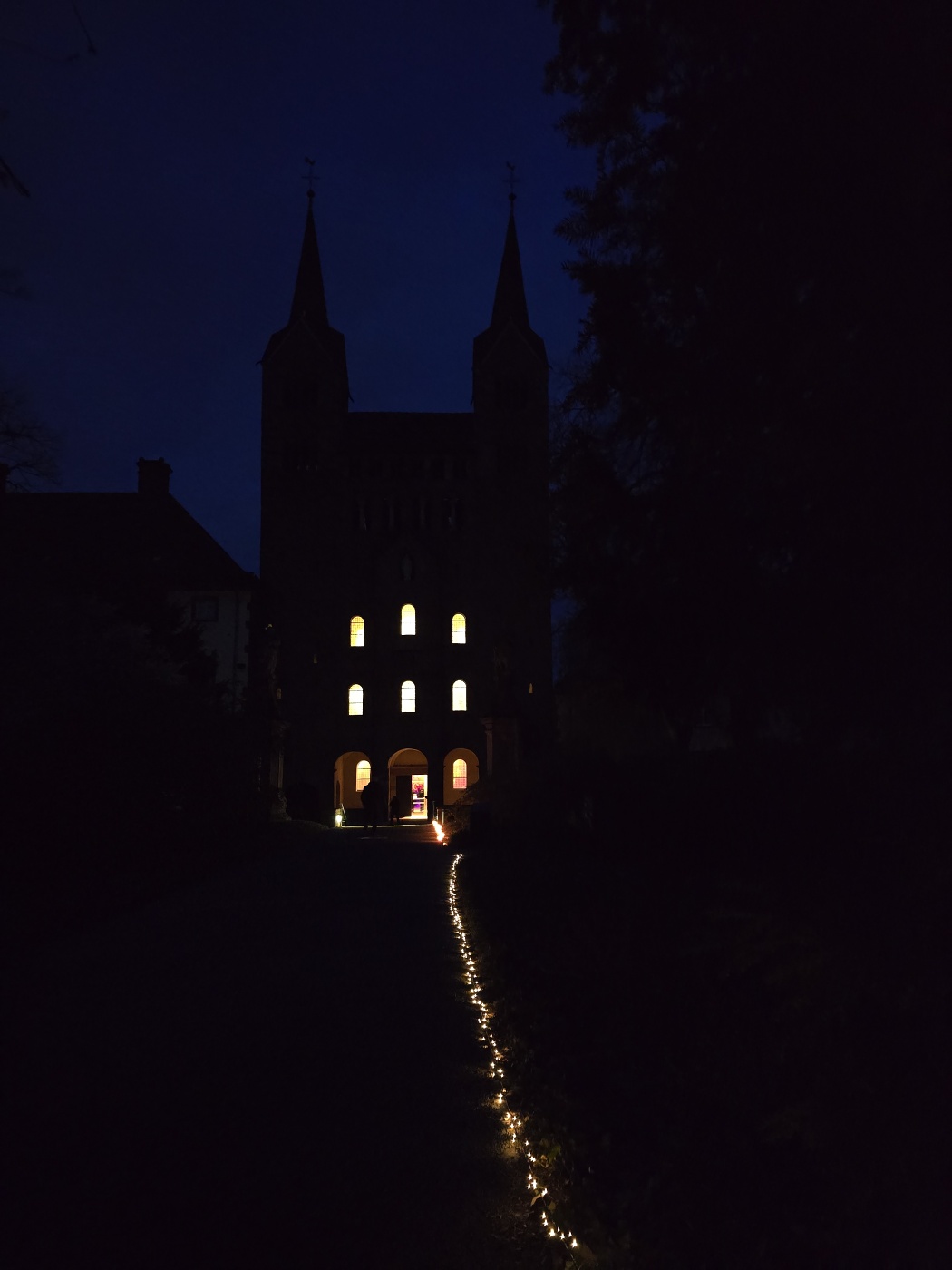 Das Kloster trug dank seiner strahlkräftigen Missionstätigkeit zur Entstehung des christlichen Europas bei und lädt seither beständig zu Liturgie, Gebet und Einkehr ein. Daher ist es doppelt ergreifend, wenn vor dem Westwerk das Osterfeuer nicht nur die Nacht, sondern auch ein frühes christliches Missionszentrum erhellt. Das Triduum 2026 führte zum Urgrund des Glaubens selbst und zu einer seiner Wurzeln in der Region.