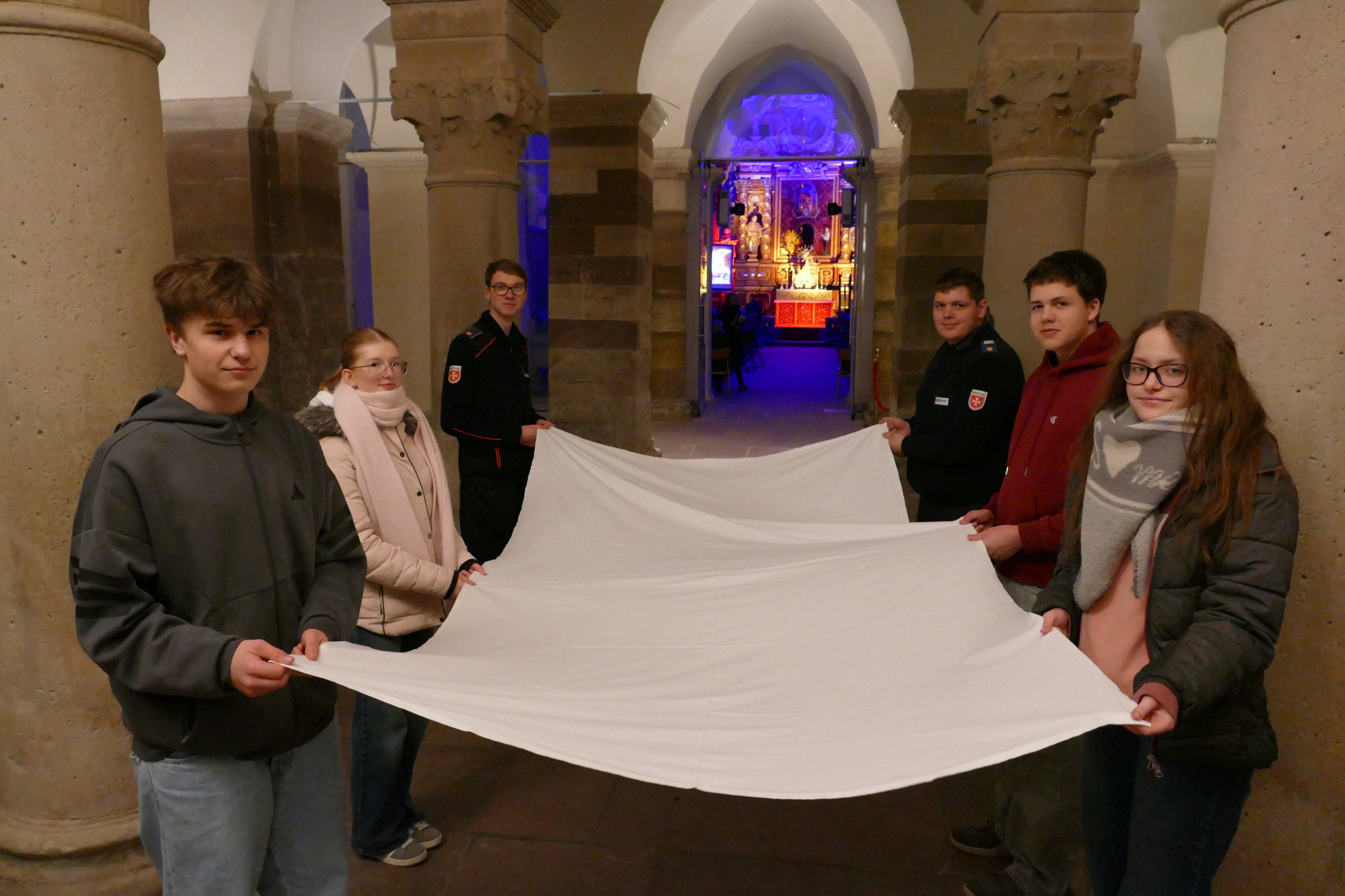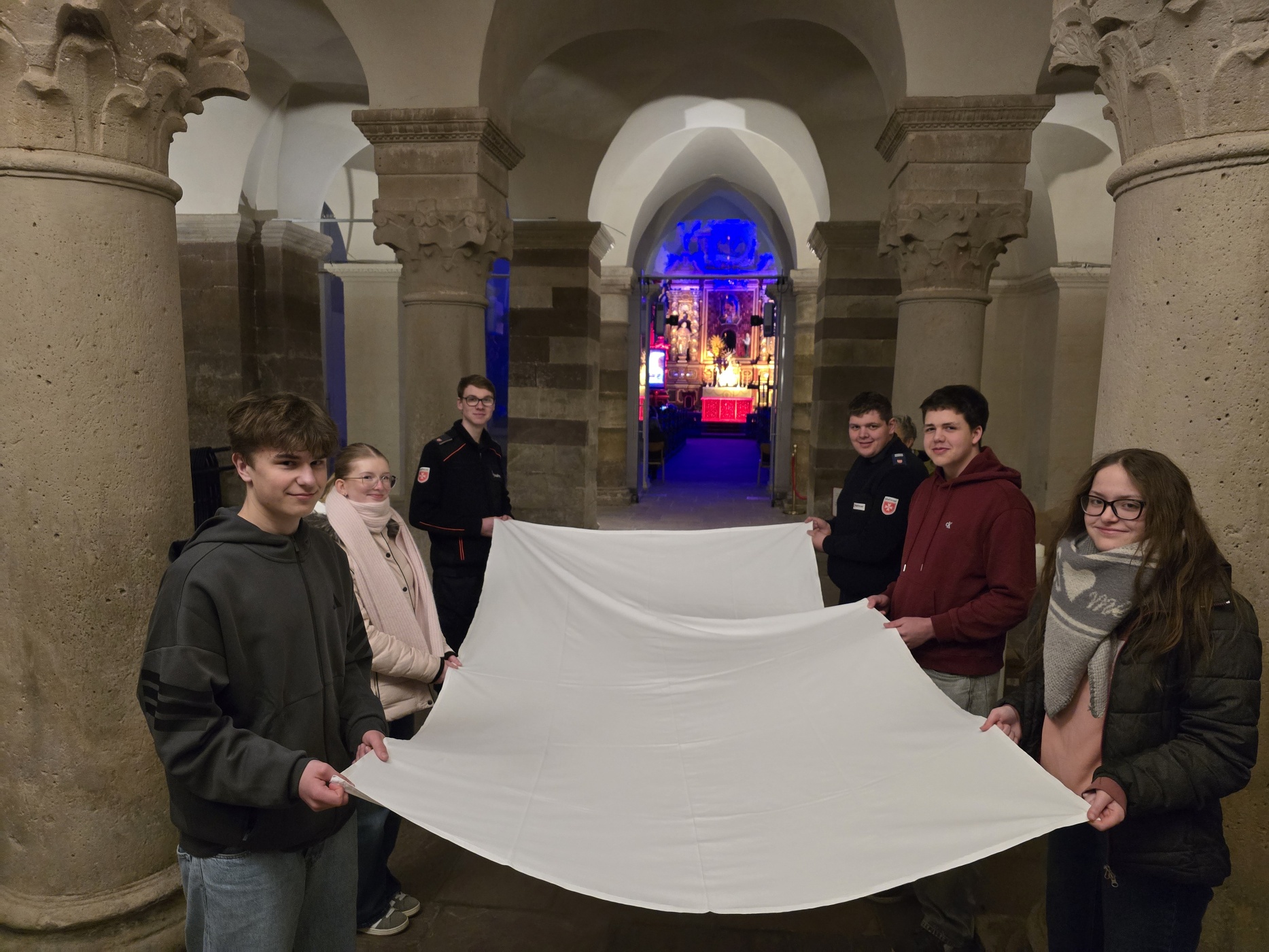 Die Tiefe des Auferstehungsglaubens bündelte sich in einer Geste mit eindringlicher Symbolik: Firmbewerber und junge Malteser trugen das Leinentuch aus dem Grab Jesu Christi in die Kirche und legten es für die Gabenbereitung auf den Altar. „So wurde aus dem Zeichen des Todes der Tisch des Lebens.“