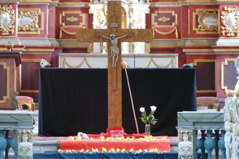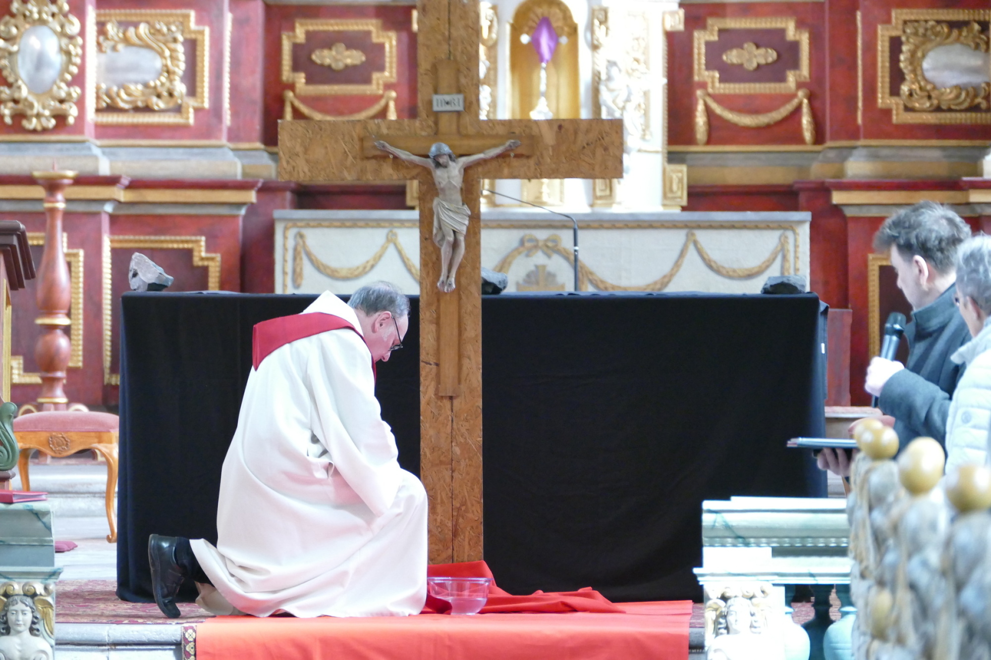 Als die Menschen dies taten, legten sie Blumen am Kreuz nieder, sodass Ostern schon ein wenig durchschimmerte an diesem dunklen Tag. Angeregt durch die Fürbitten schloss die große Weggemeinschaft viele Menschen in ihr Gebet ein: all jene, denen Unrecht geschieht, die sich alleine fühlen, die keine Zukunft mehr sehen und die in Angst, Krieg, Trauer oder Krankheit leben.