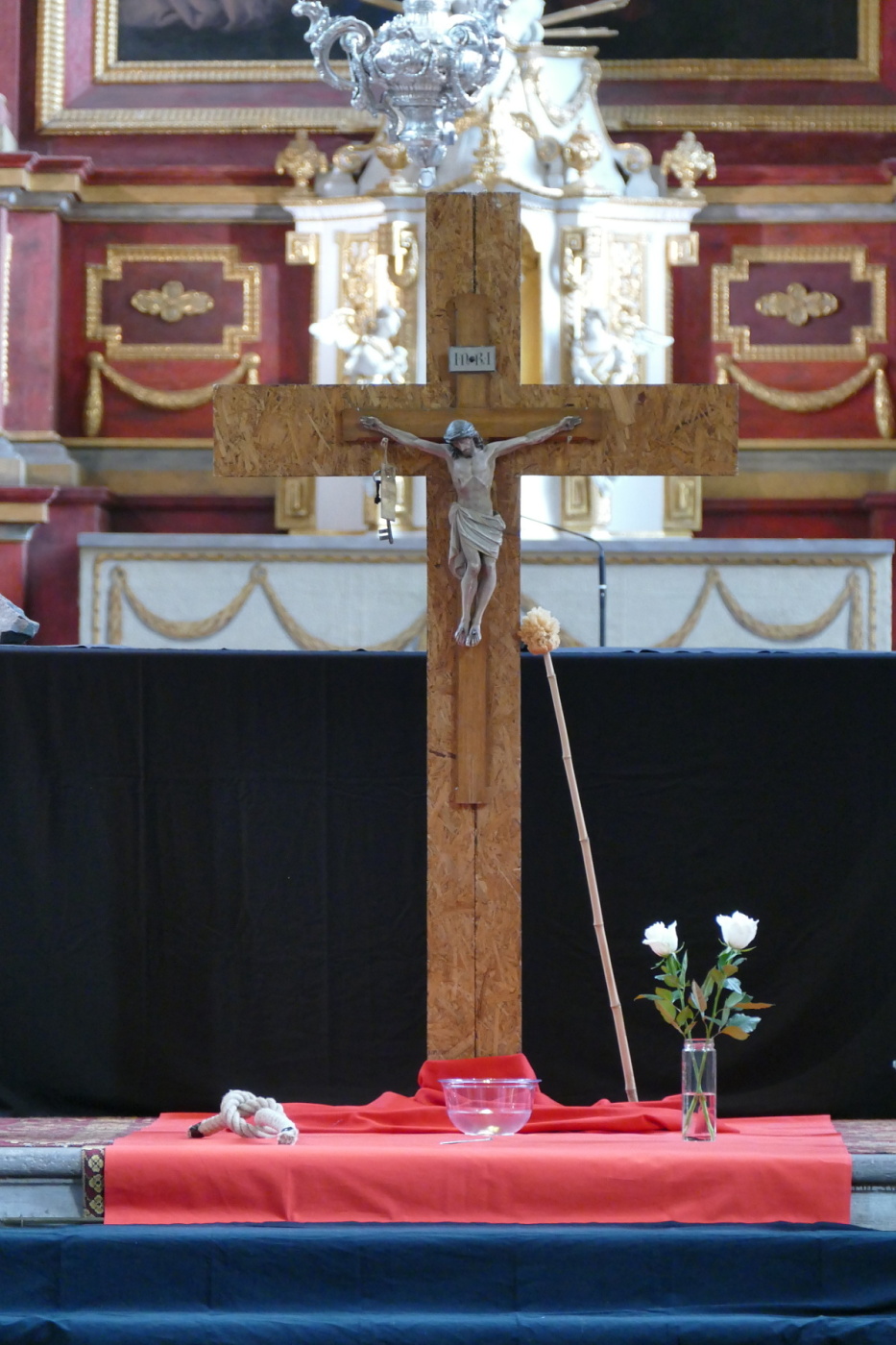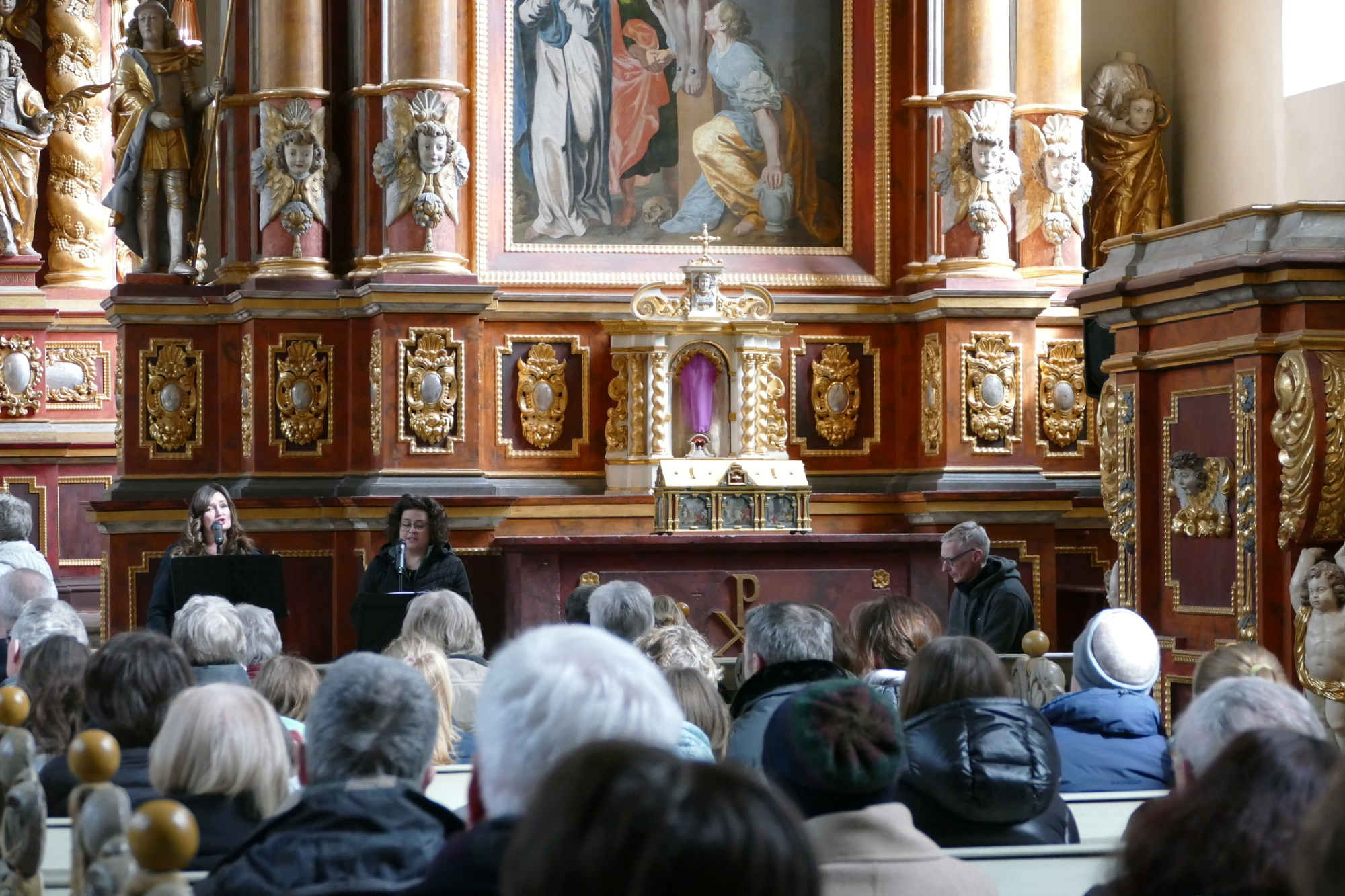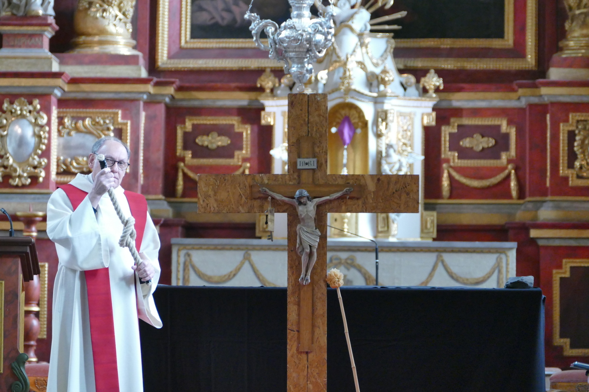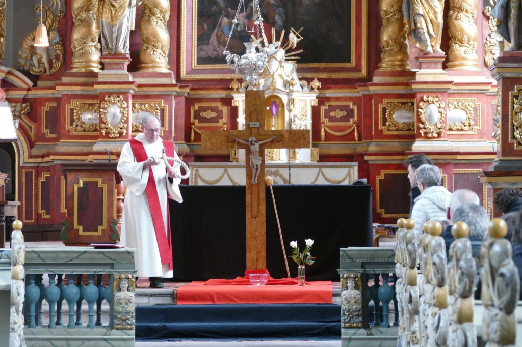 Die Karfreitagsliturgie in der ehemaligen Abteikirche stellte die letzten sieben Worten Christi am Kreuz in den Mittelpunkt. Streiflichtartig, aber trotzdem eindringlich knüpfte Gemeindereferent Carsten Sperling zunächst an die Nacht mit der Festnahme, den Verhören und schließlich dem Todesurteil an.
