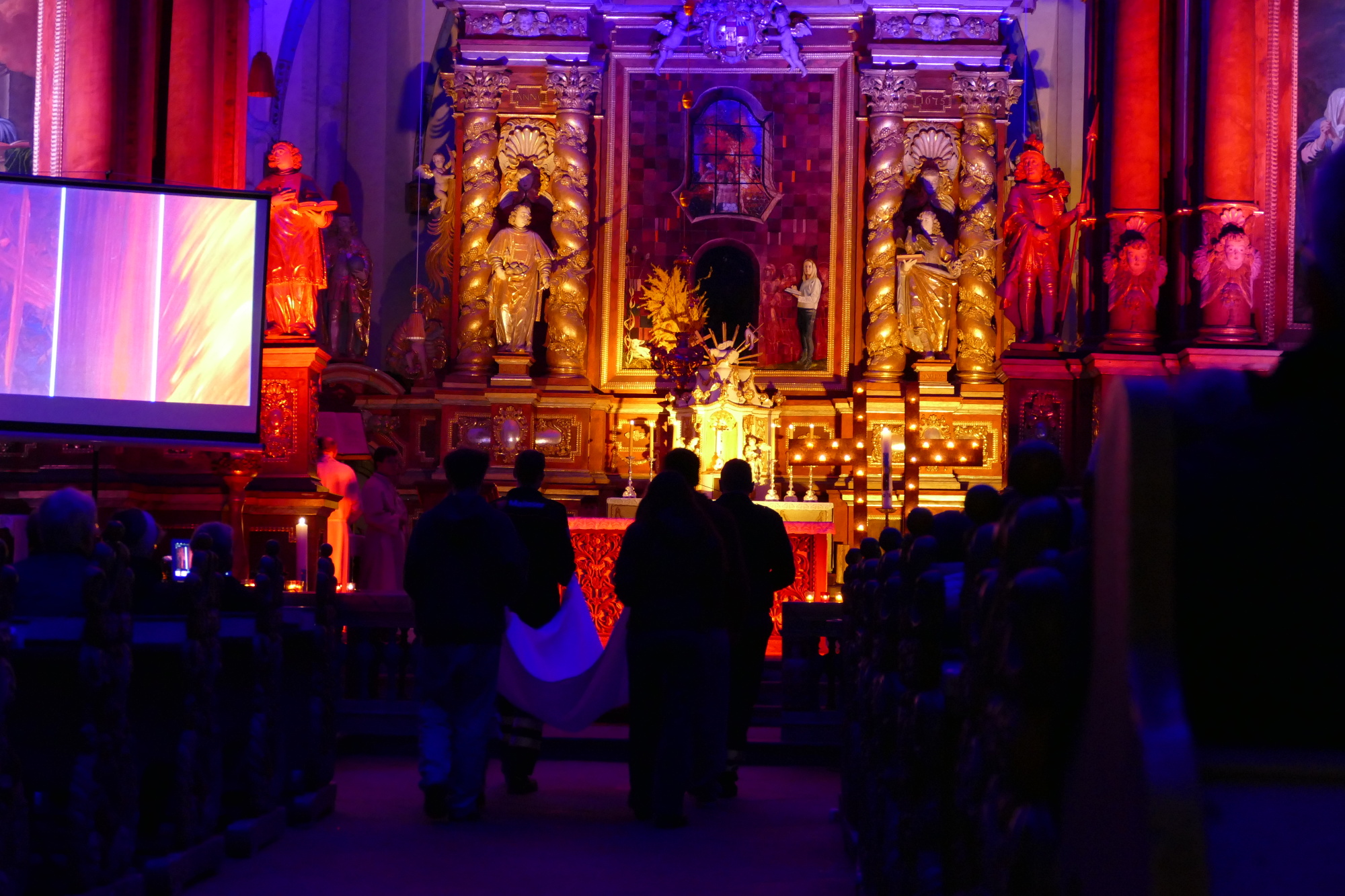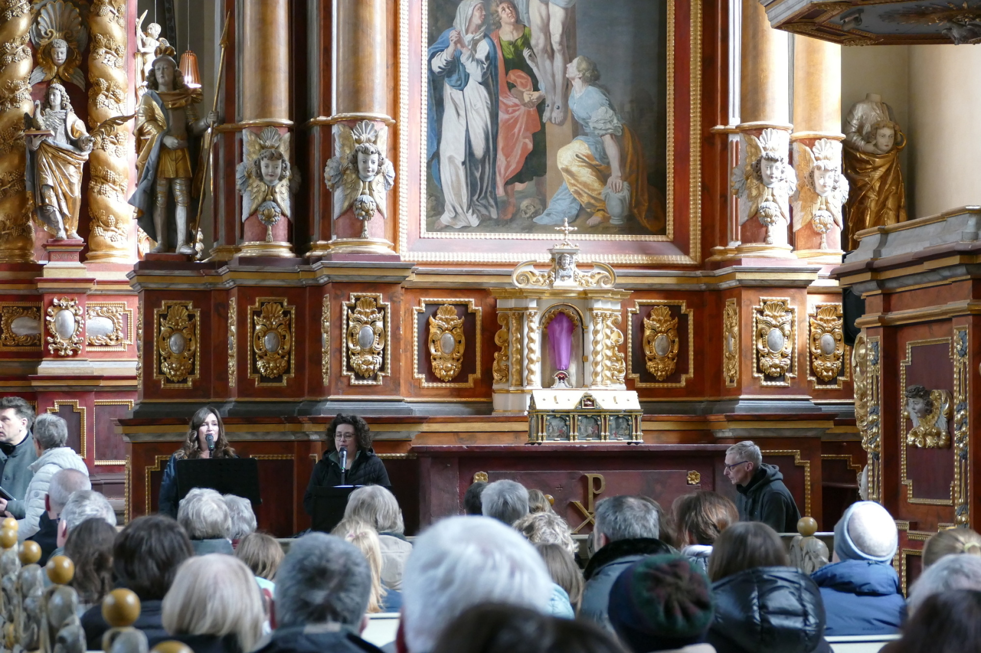 Das dritte Wort richtet den Blick auf die Gottesmutter Maria (Johannes 19,26–27): Jesus vertraut sie dem Jünger, den er liebte, an. Am Kreuz ordne Jesus nicht Dinge, sondern Menschen, deutete Carsten Sperling diese Geste. „Er sieht die, die bleiben. Und er stiftet Nähe, wo Einsamkeit droht. Gemeinschaft ist hier keine Stimmung. Sie ist Verantwortung: füreinander da sein – im Dunkel.“