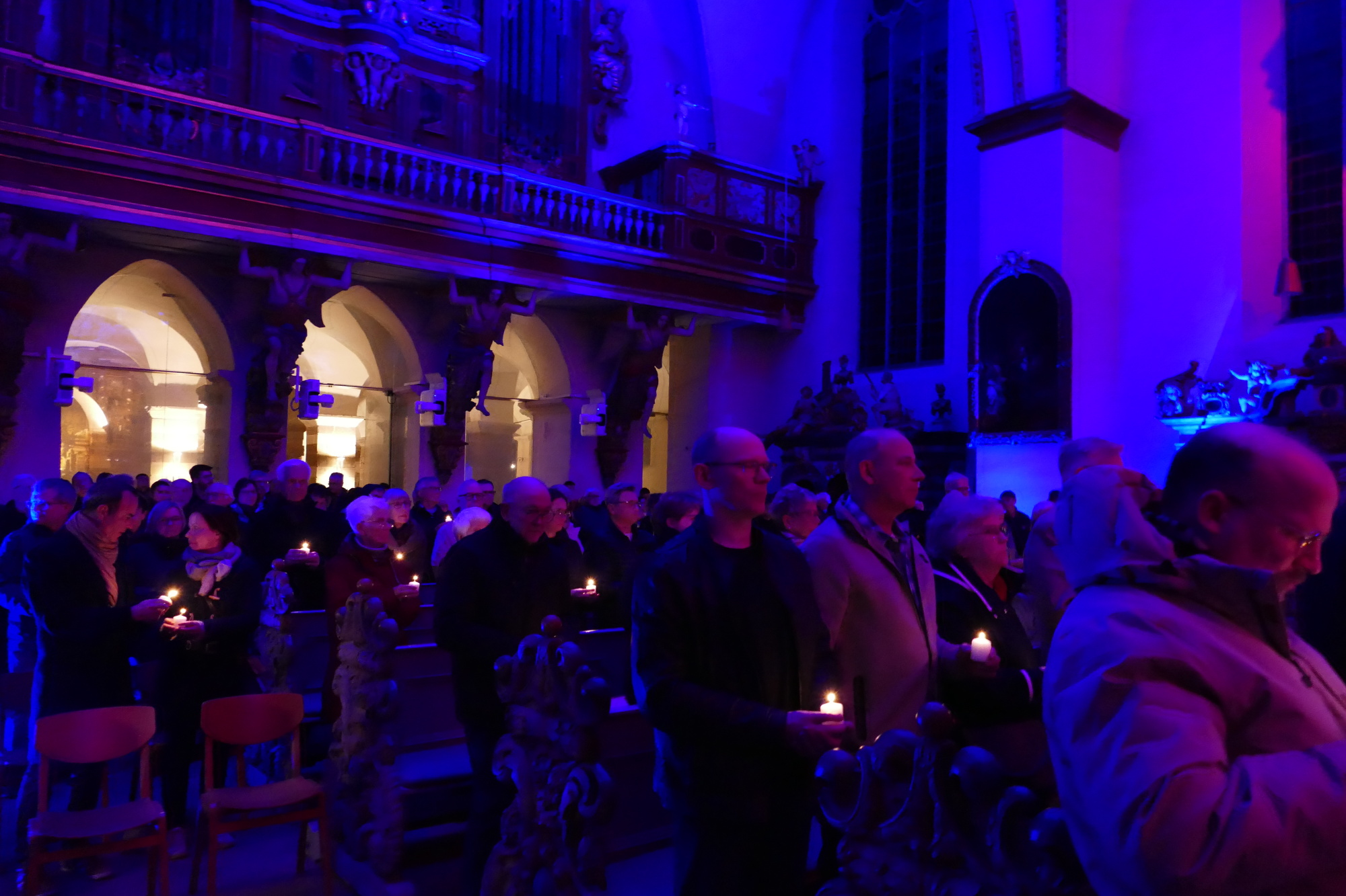 Die Zeichen, die Jesus im Abendmahlssaal setze, „sprechen von seiner dienenden Hingabe und auch von dem, was ihm später am Kreuz geschieht“: Im Bewusstsein dessen, was Carsten Sperling und Thomas Nal ins Wort und die Musikgruppe zum Klingen gebracht hatten, gingen die Gäste am Gründonnerstag auseinander. Den Karfreitag hatten sie vor Augen. Und waren in Gedanken bei Jesus am Ölberg, wo er seinem Leiden voller Angst entgegenblickte und schließlich verraten und verhaftet wurde.