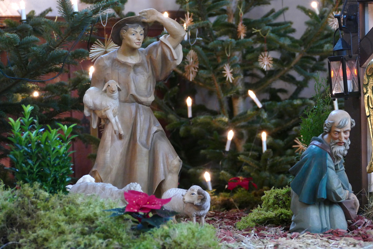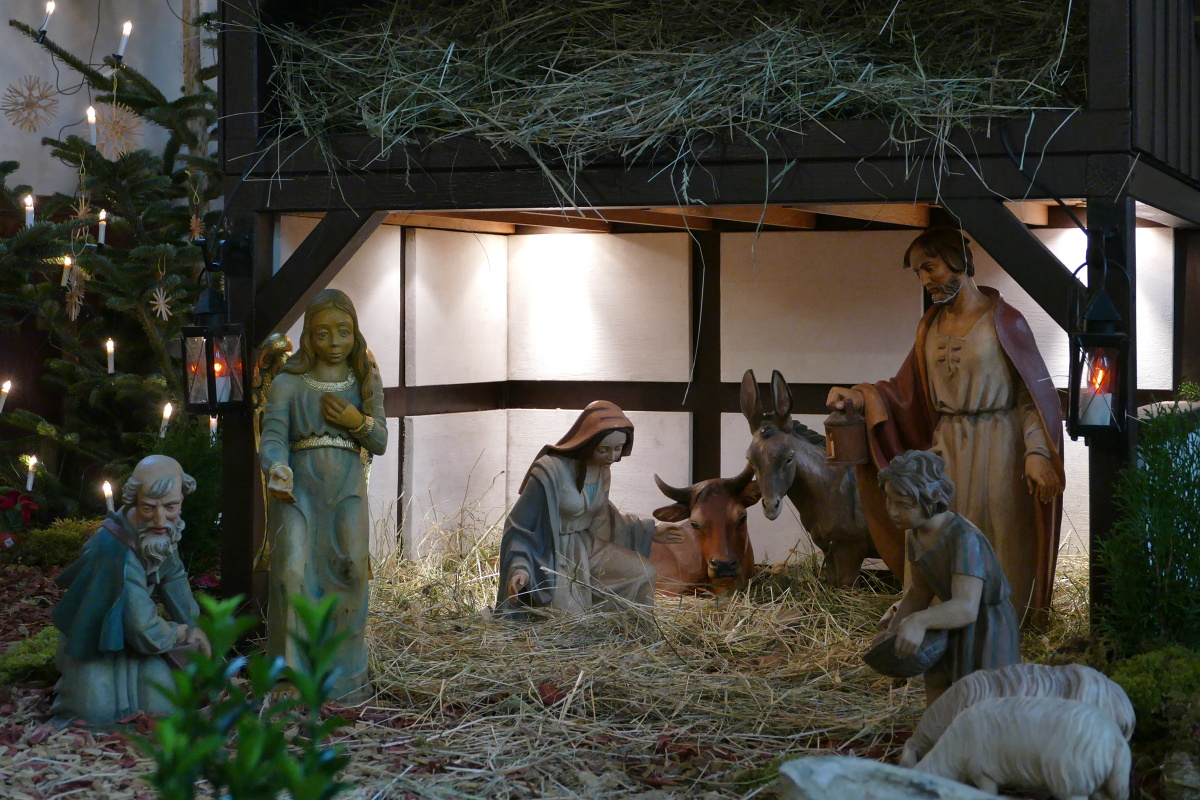 Der Platz zwischen dem Heiligen Paar ist aber noch frei. Erst zur Christmette am Heiligen Abend – Beginn: 17.30 Uhr – liegt das Jesuskind in der Krippe, gebettet auf Heu und auf Stroh.